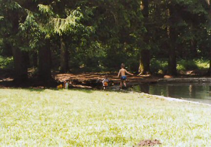 Es gibt dort 2 Feuerstellen, eine große Wiese und was für die Kinder am schönsten ist: